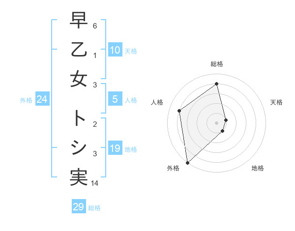 早乙女 トシ実さんを姓名の画数から五運を鑑定