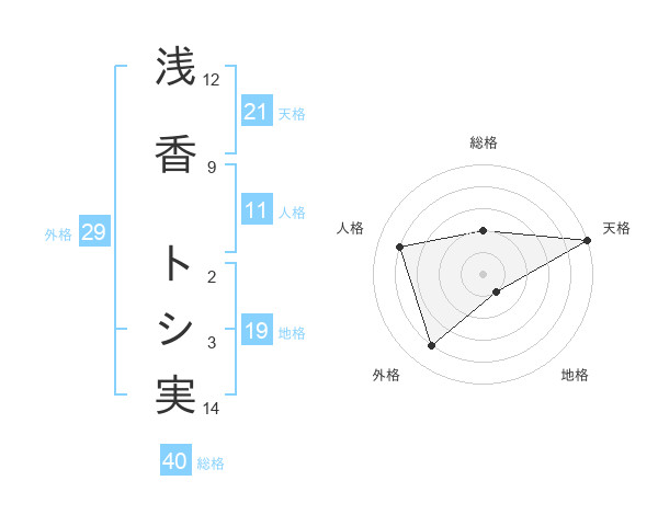 浅香 トシ実さんを姓名の画数から五運を鑑定