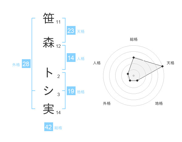 笹森 トシ実さんの天格は23画の5点