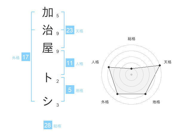 加治屋 トシさんを姓名の画数から五運を鑑定