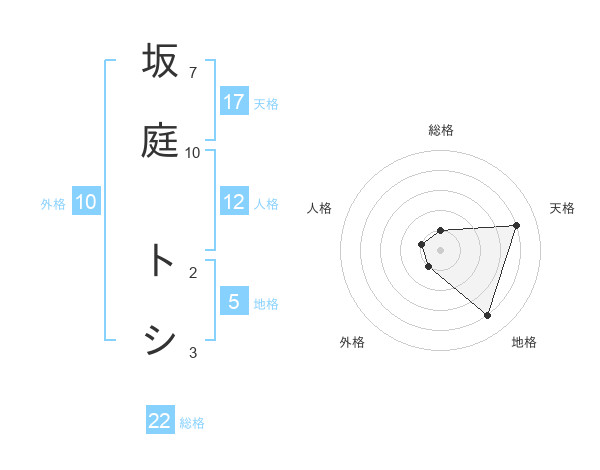 坂庭 トシさんの天格は17画の4点!