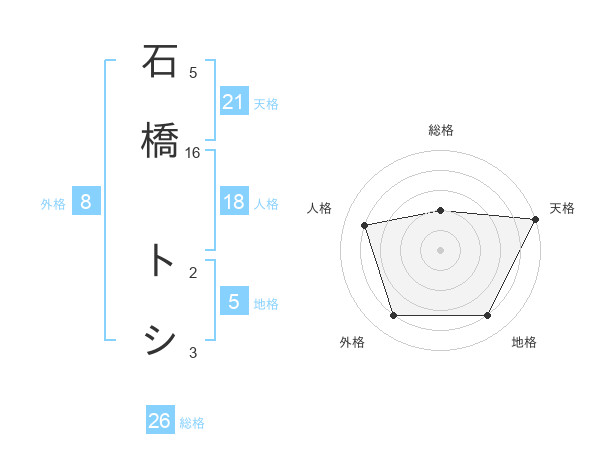 石橋 トシさんの地格は5画の4点!