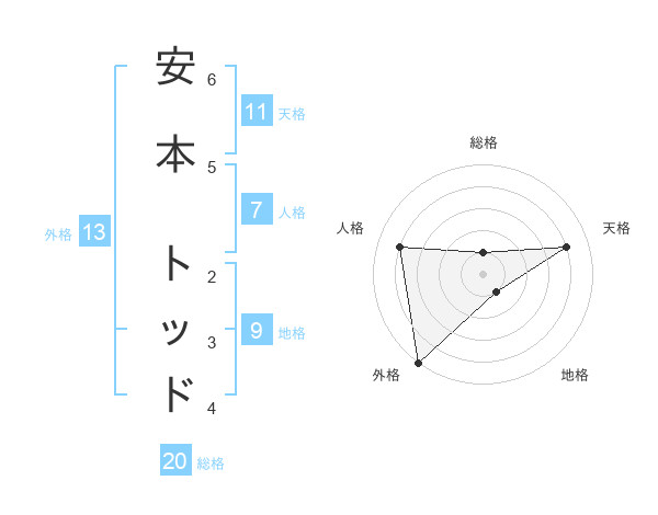 安本 トッドさんの外格は13画の5点