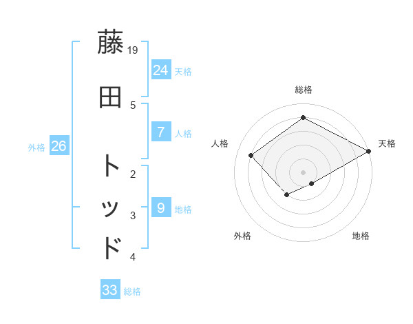 藤田 トッドさんを姓名の画数から五運を鑑定