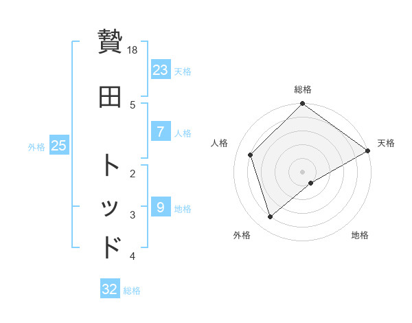 贄田 トッドさんを姓名の画数から五運を鑑定
