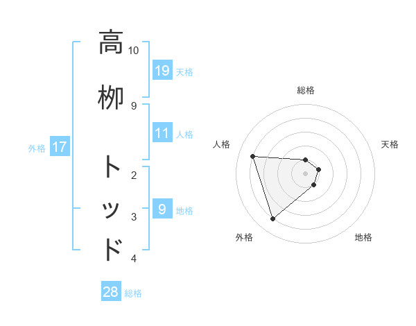 高栁 トッドさんを姓名の画数から五運を鑑定