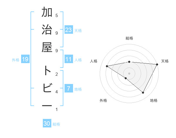 加治屋 トビーさんを姓名の画数から五運を鑑定