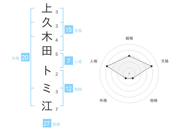上久木田 トミ江さんを姓名の画数から五運を鑑定