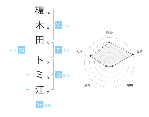 榎木田 トミ江さんの天格は23画の5点!