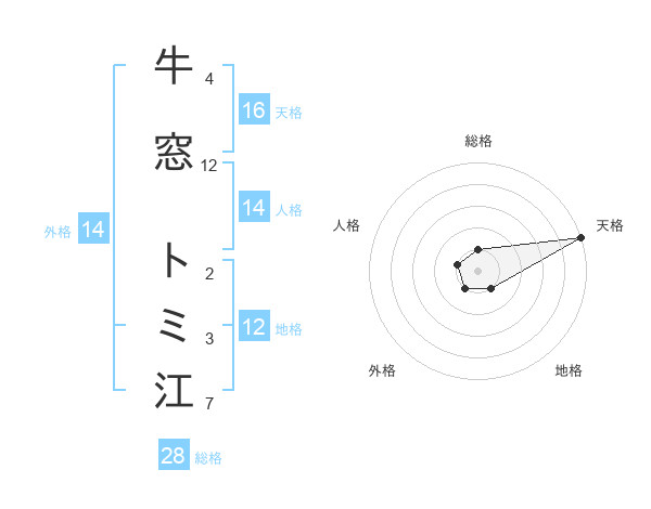 牛窓 トミ江さんの総格は28画の1点!