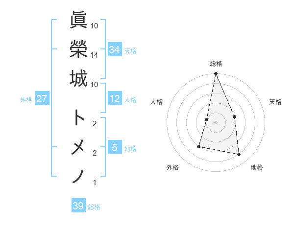 眞榮城 トメノさんを姓名の画数から五運を鑑定