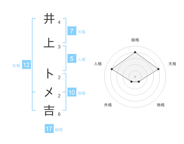 井上 トメ吉さんを姓名の画数から五運を鑑定