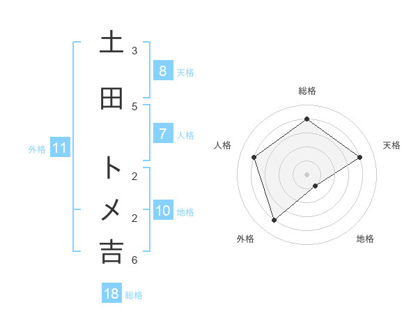 土田 トメ吉さんを姓名の画数から五運を鑑定