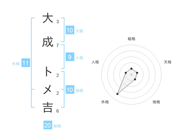 大成 トメ吉さんを姓名の画数から五運を鑑定