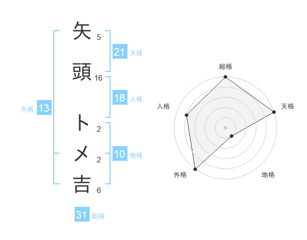 矢頭 トメ吉さんを姓名の画数から五運を鑑定