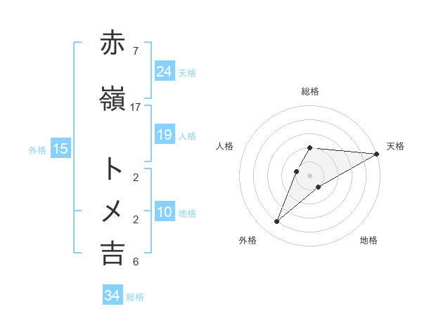 赤嶺 トメ吉さんを姓名の画数から五運を鑑定