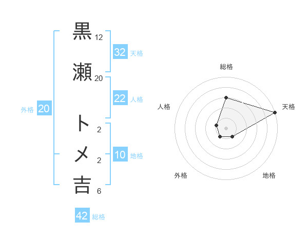 黒瀬 トメ吉さんの総格は42画の3点!