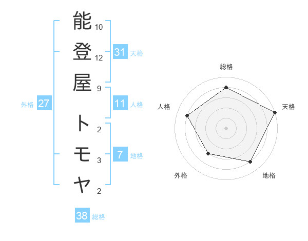 能登屋 トモヤさんを姓名の画数から五運を鑑定
