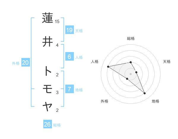蓮井 トモヤさんを姓名の画数から五運を鑑定