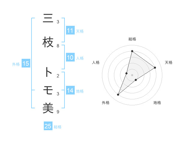 三枝 トモ美さんを姓名の画数から五運を鑑定