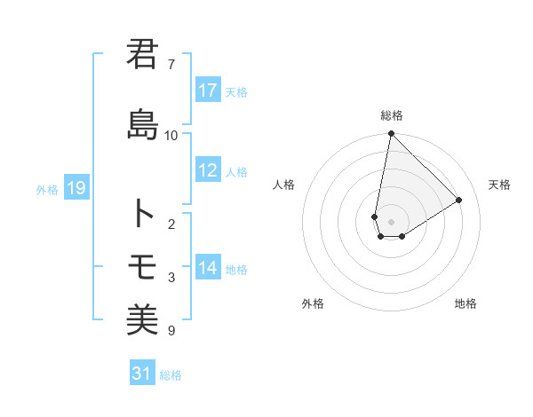 君島 トモ美さんを姓名の画数から五運を鑑定