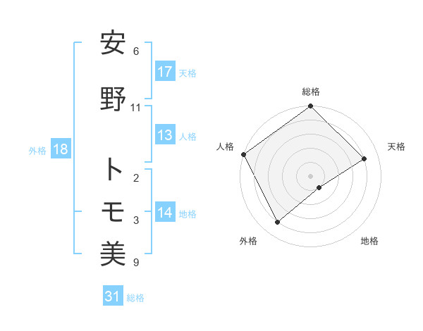 安野 トモ美さんを姓名の画数から五運を鑑定