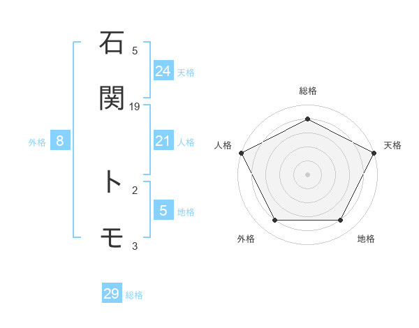 石関 トモさんの天格は24画の5点!