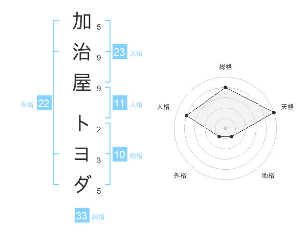 加治屋 トヨダさんを姓名の画数から五運を鑑定