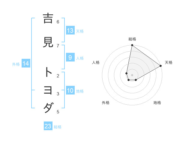 吉見 トヨダさんの天格は13画の5点!