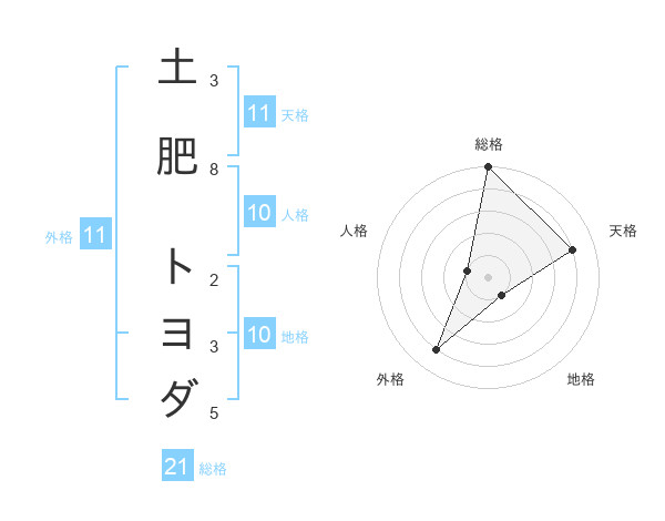 土肥 トヨダさんを姓名の画数から五運を鑑定