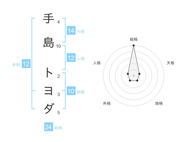 手島 トヨダさんを姓名の画数から五運を鑑定