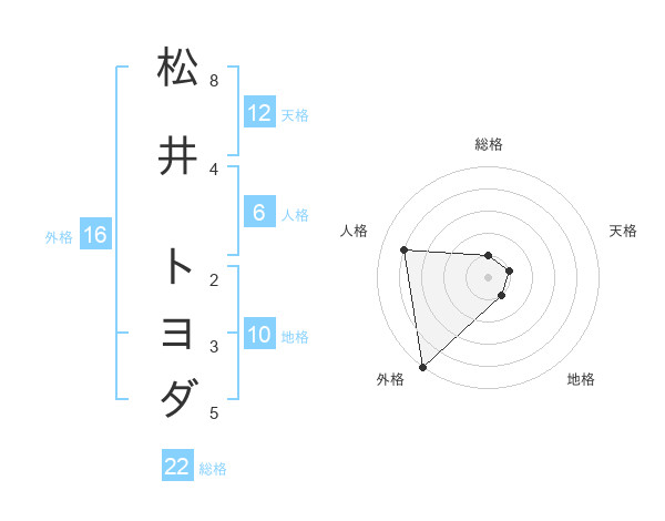 松井 トヨダさんを姓名の画数から五運を鑑定