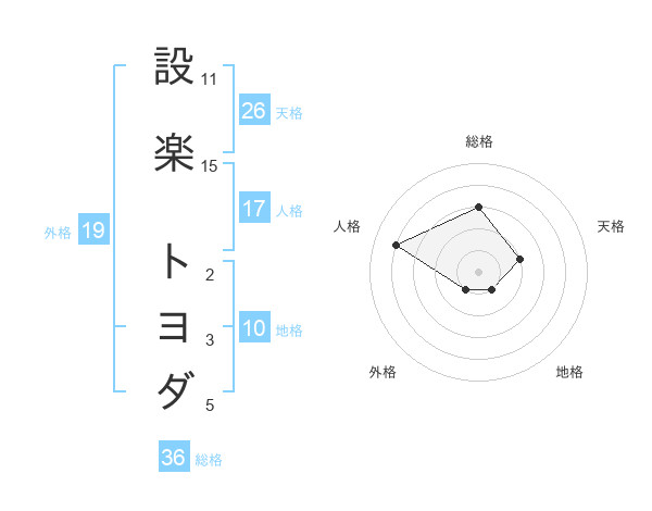 設楽 トヨダさんを姓名の画数から五運を鑑定
