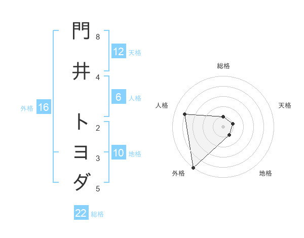 門井 トヨダさんの外格は16画の5点!
