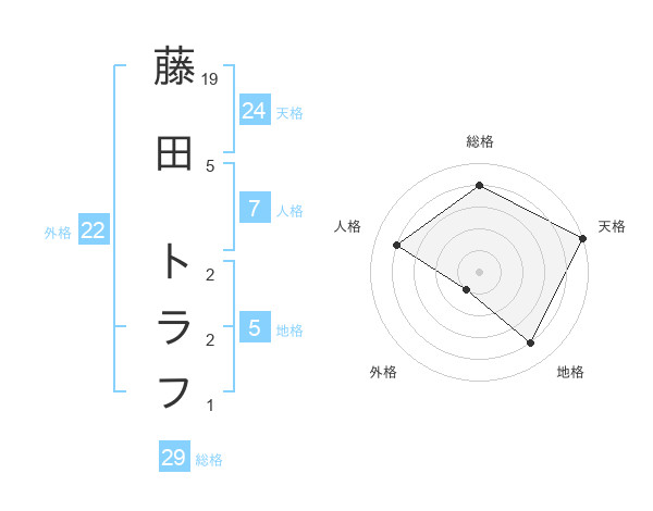 藤田 トラフさんを姓名の画数から五運を鑑定