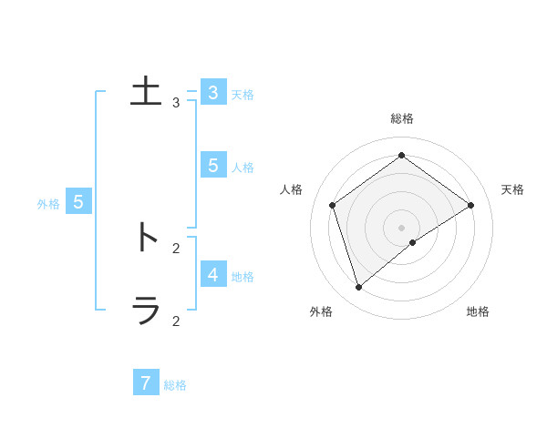 土 トラさんの総格は7画の4点!