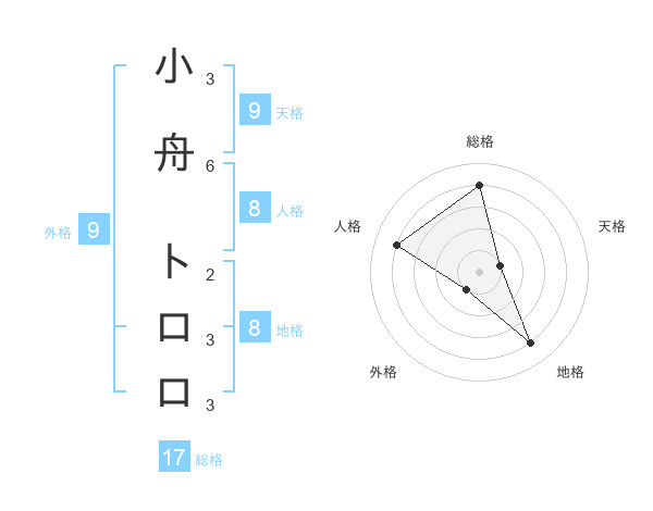 小舟 トロロさんの総格は17画の4点!