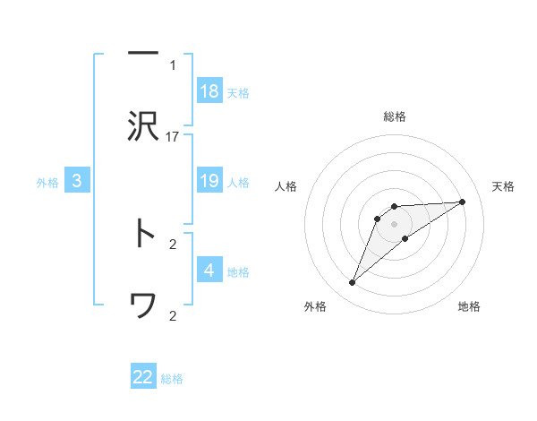 一沢 トワさんの総格は22画の1点!