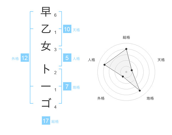 早乙女 トーゴさんを姓名の画数から五運を鑑定