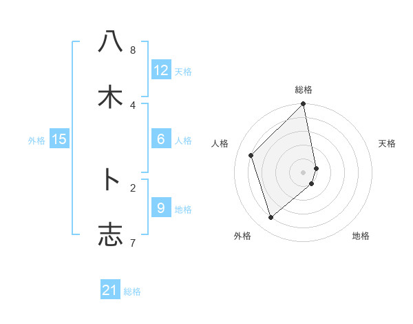 八木 ト志さんの総格は21画の5点!
