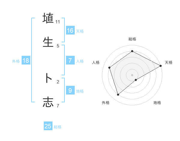 埴生 ト志さんを姓名の画数から五運を鑑定