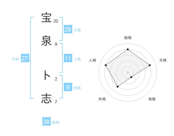 宝泉 ト志さんを姓名の画数から五運を鑑定