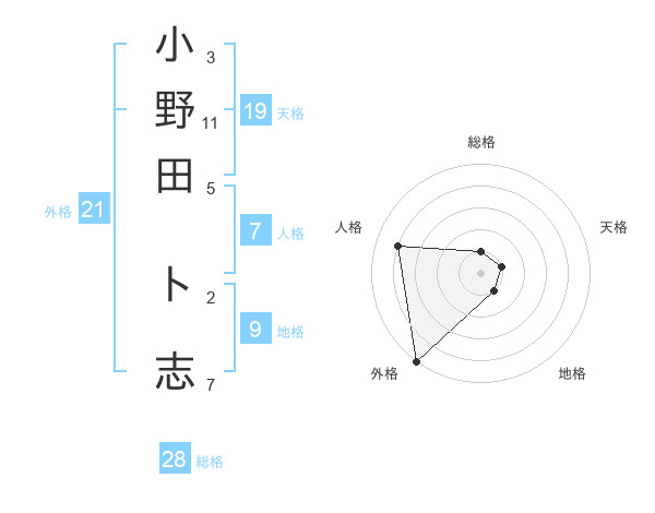 小野田 ト志さんの外格は21画の5点!