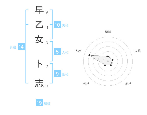 早乙女 ト志さんを姓名の画数から五運を鑑定