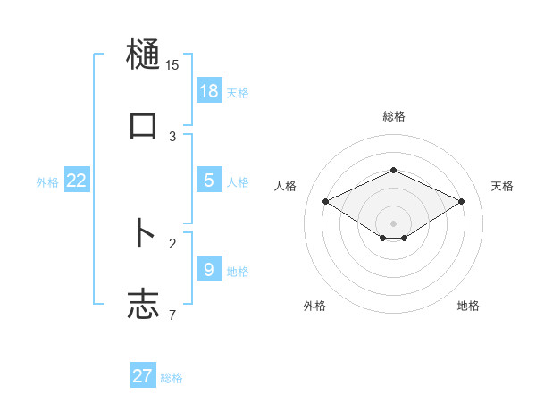 樋口 ト志さんの総格は27画の3点!