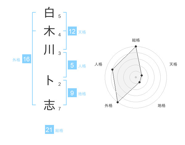 白木川 ト志さんを姓名の画数から五運を鑑定