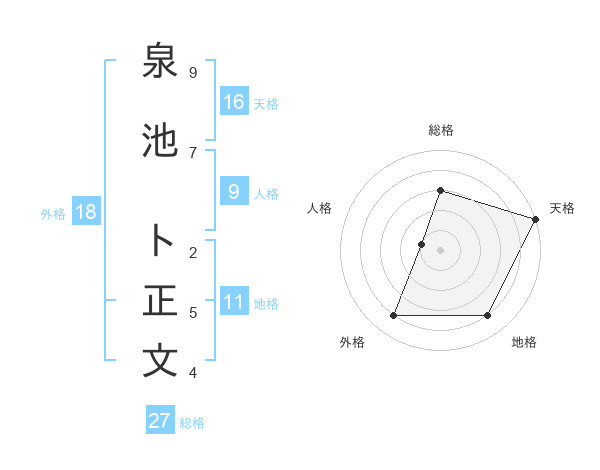 泉池 ト正文さんの総格は27画の3点!