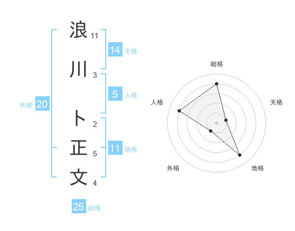 浪川 ト正文さんを姓名の画数から五運を鑑定