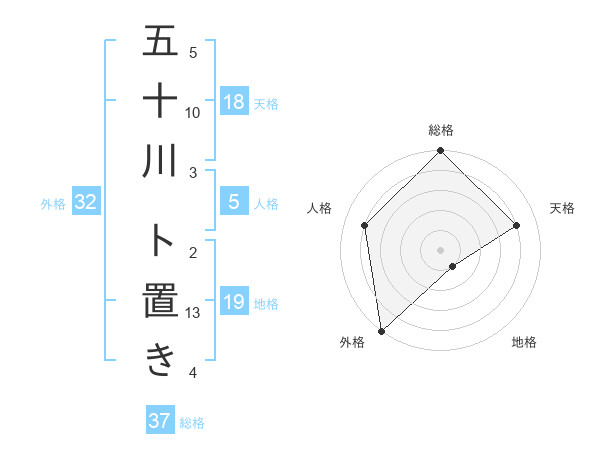五十川 ト置きさんを姓名の画数から五運を鑑定