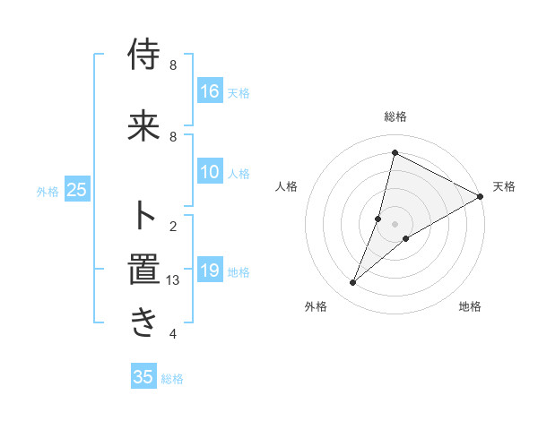侍来 ト置きさんの総格は35画の4点!